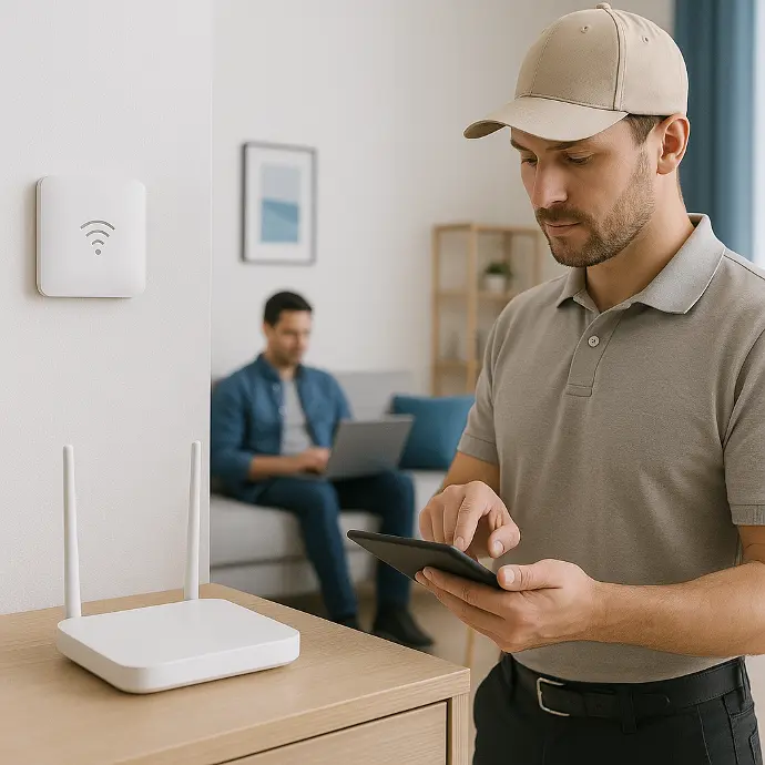Of je nu particulier bent of een kleine kmo: wij zorgen voor een stabiel én veilig netwerk, volledig afgestemd op jouw situatie, met snelle installatie, duidelijke uitleg en een hulplijn achteraf.